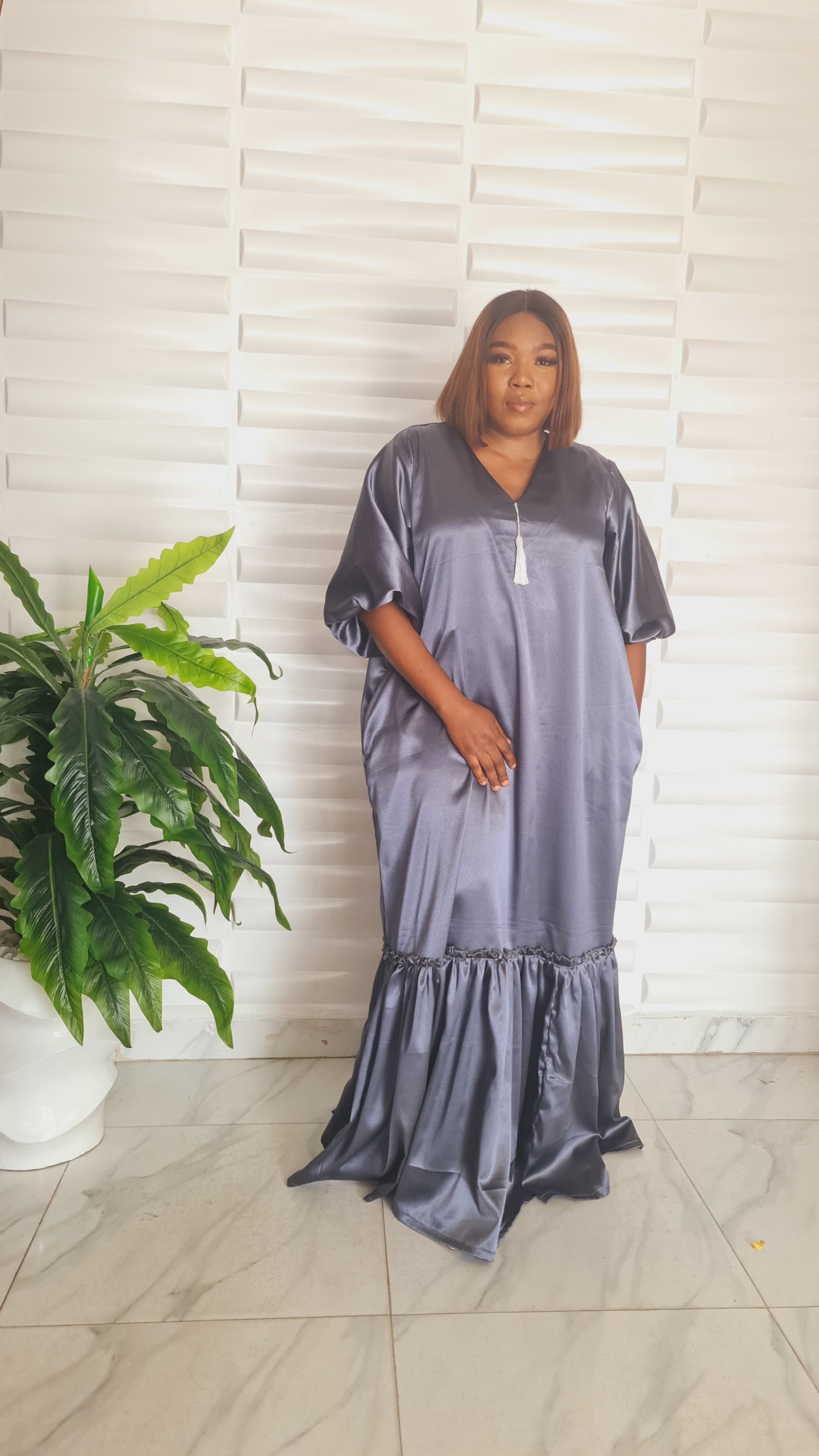 Grace meets grandeur with our Silver Satin Flow Dress, a stunning piece designed to make you the star of any special occasion. This dress flows effortlessly, creating a silhouette that speaks of refined elegance and timeless luxury.